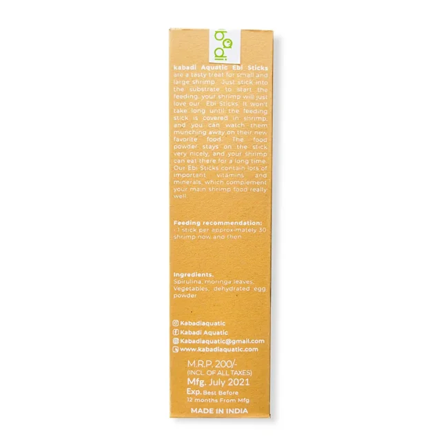 Kabadi Ebi Sticks Spirulina یک خوراک ۱۰۰٪ طبیعی برای میگوهای آکواریومی است که از